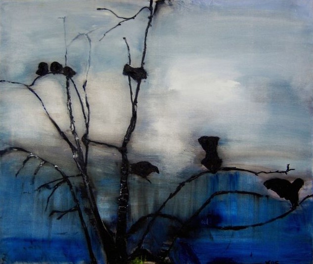 ‘Het beeldend werk is voor mij geen illustratie bij mijn poëzie. De woorden zijn geen verklaring voor de schilderijen, maar soms sluiten mijn woorden en beelden vrijwel naadloos op elkaar aan’